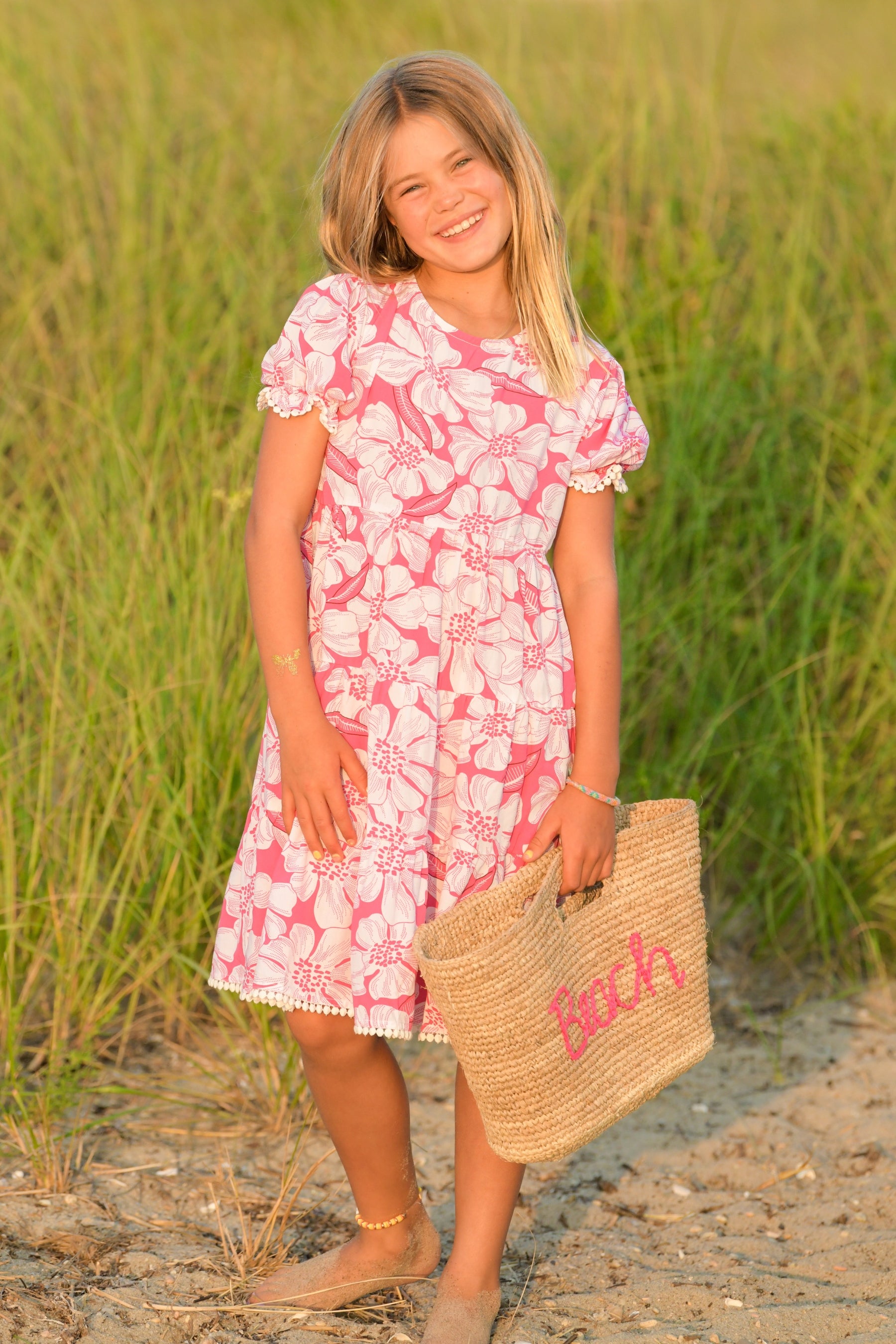 Girl's Annie Dress / Hot Pink Floral