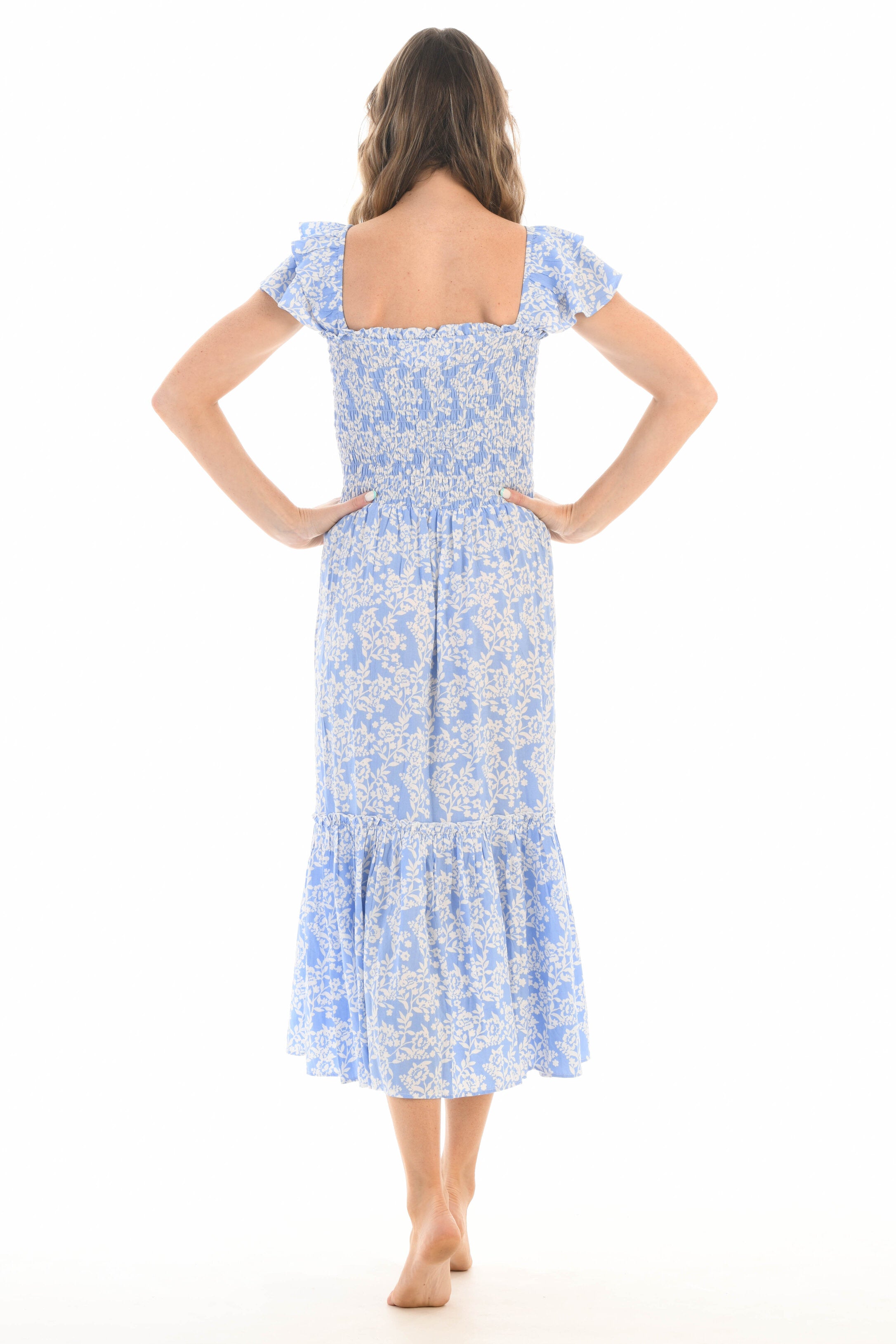 • Flattering smocked bodice